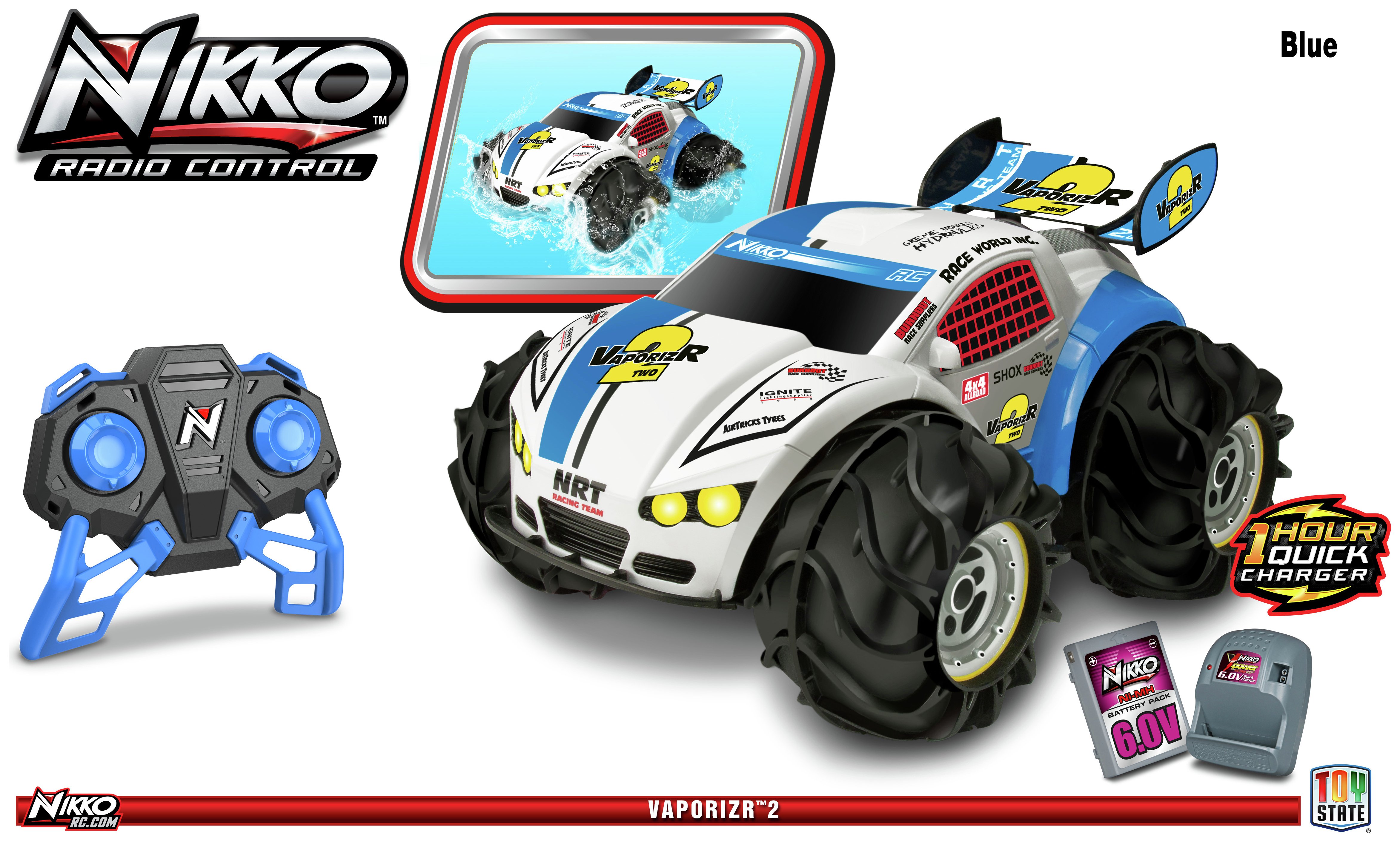 Nikko VaporizR 2. With this tough blue VaporizR 2 you can race on land and water! on the water it acts likes a boat. With a complete four wheel drive system. It can reach up to 15KM per hour. Includes ... Get Content Here